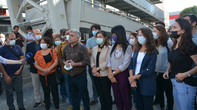 İstanbul Valiliği tarafından yasaklanan 1 Eylül mitingine ilişkin İncirli Metrobüs durağı girişinde basın açıklaması yaptı.