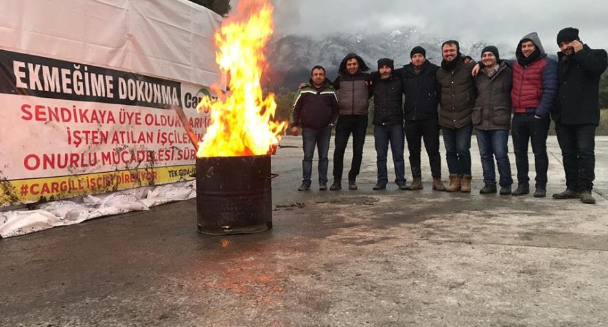 Sendikal faaliyetleri nedeniyle işten çıkarılan ve direniş kararı alan Cargill işçileri ısınmak için kurdukları “soba” gerekçesiyle gözaltına alındı