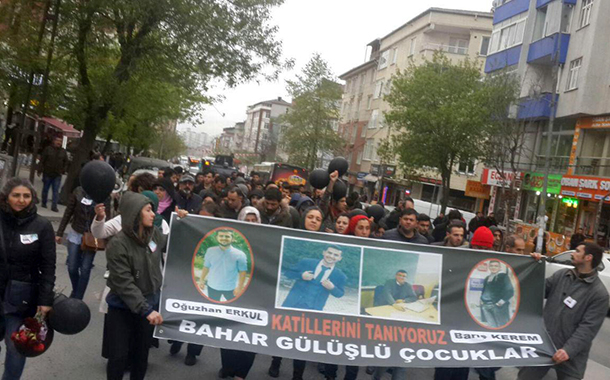 Burada toplanan kitle, üzerinde Erkul ve Kerem’in fotoğraflarının bulunduğu “Katillerini tanıyoruz. Bahar gülüşlü çocuklar” yazılı pankartı açtı.