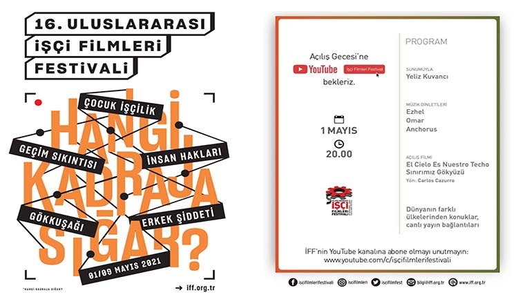 Pandemi nedeniyle bu yıl da çevrimiçi (online) olarak düzenlenen festivalin “açılış gecesi” 1 Mayıs 2021’de, 1 Mayıs Birlik, Mücadele ve Dayanışma Günü’nde çevrimiçi olarak İFF’nin YouTube kanalı üzerinden canlı yayınlanacak.