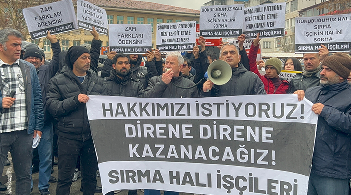 Aylardır zamlı ücretlerini alamayan, geçtiğimiz ay itibariyle hak edilmiş ücretleri ödenmeyen ve ücretleri sürekli olarak geç ödenen, Gaziantep’te kurulu Sırma Halı işçileri 9 Mart 2026’da iş bırakmıştı.