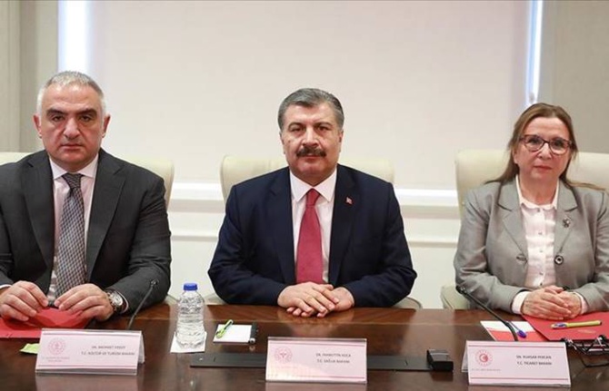 Kültür ve Turizm Bakanı Mehmet Nuri Ersoy ise, “15 Nisan virüs açısından hassas bir tarih. Mümkünse yurt dışından Türkiye’ye turizm talebinin Nisan sonuna ertelenmesi mantıklı geliyor. Geçen seneye kıyasla daha az turistin gelmesini sağlamanın sağlıklı çözüm olacağına karar verdik. Kültürel etkinliklerle ilgili bakanlığımıza bağlı genel müdürlükleri etkinlikleri Nisan sonrası gündemde” dedi.