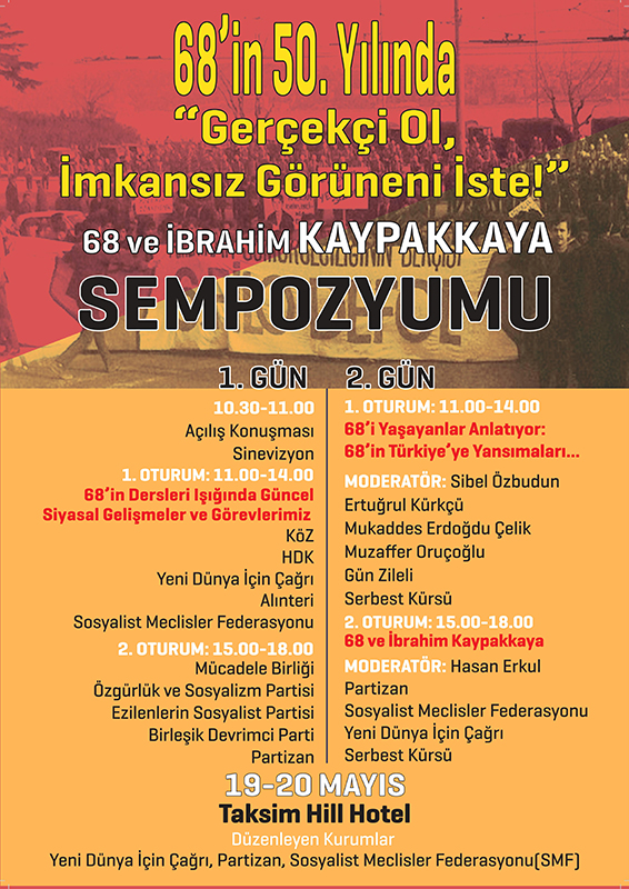Yeni Dünya İçin Çağrı, Partizan ve Sosyalist Meclisler Federasyonu, “68 ve İbrahim Kaypakkaya” sempozyumu düzenliyor.