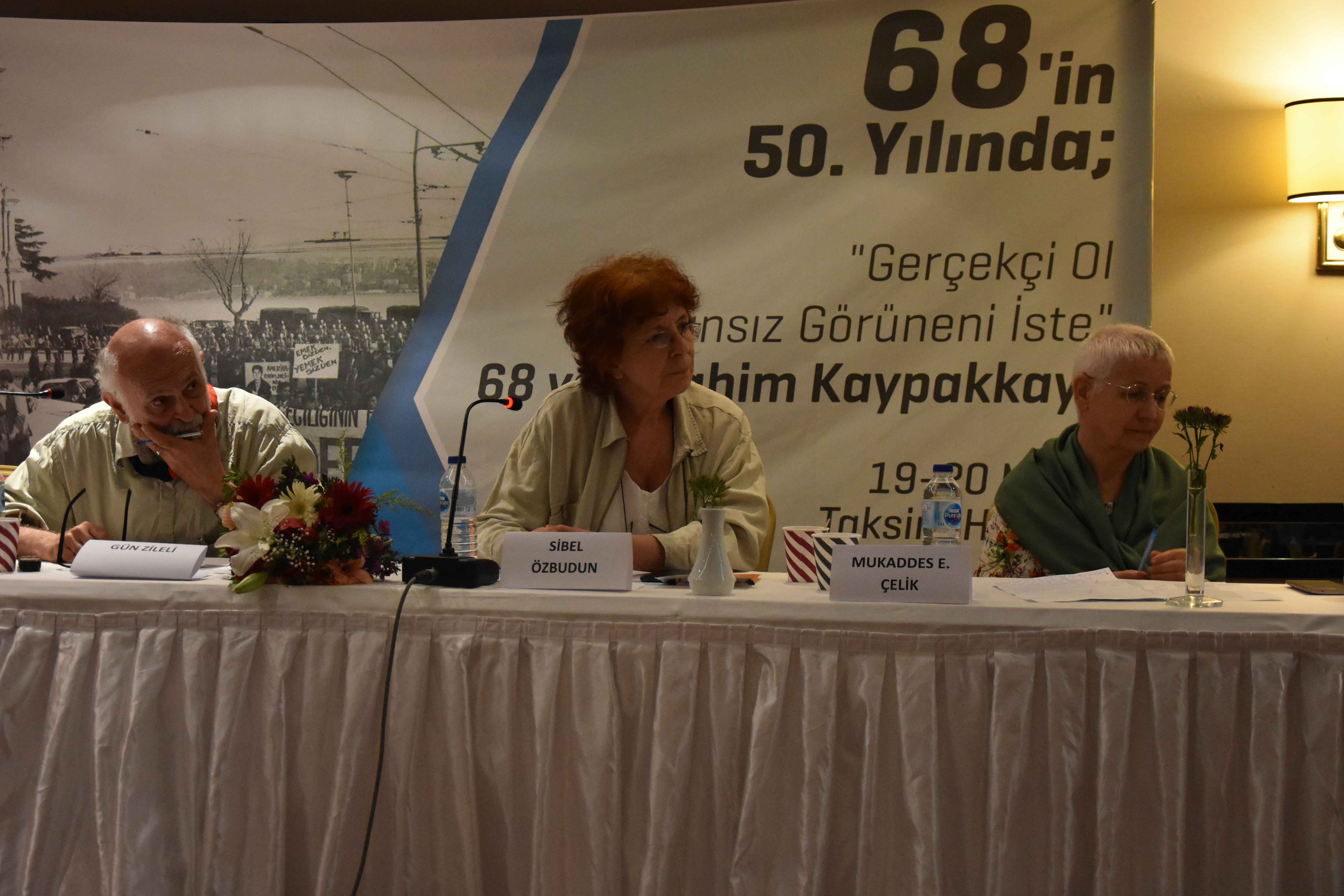 68 hareketinin 50. yıldönümünde SMF, Partizan ve YDİ Çağrı’nın ortak düzenlediği “68’in 50. Yılında Gerçekçi Ol İmkansız Görüneni İste” sempozyumun ikinci günü Taksim Hill Otel’de başladı. “68’i Yaşayanlar Anlatıyor: 68’in Türkiye’ye Yansımaları” başlığıyla düzenlenen üçüncü oturumun konuşmacıları Gün Zileli, Mukaddes Erdoğdu Çelik ve Muzaffer Oruçoğlu; Sibel Özbudun ise oturumun modaratörlüğünü üstlendi.