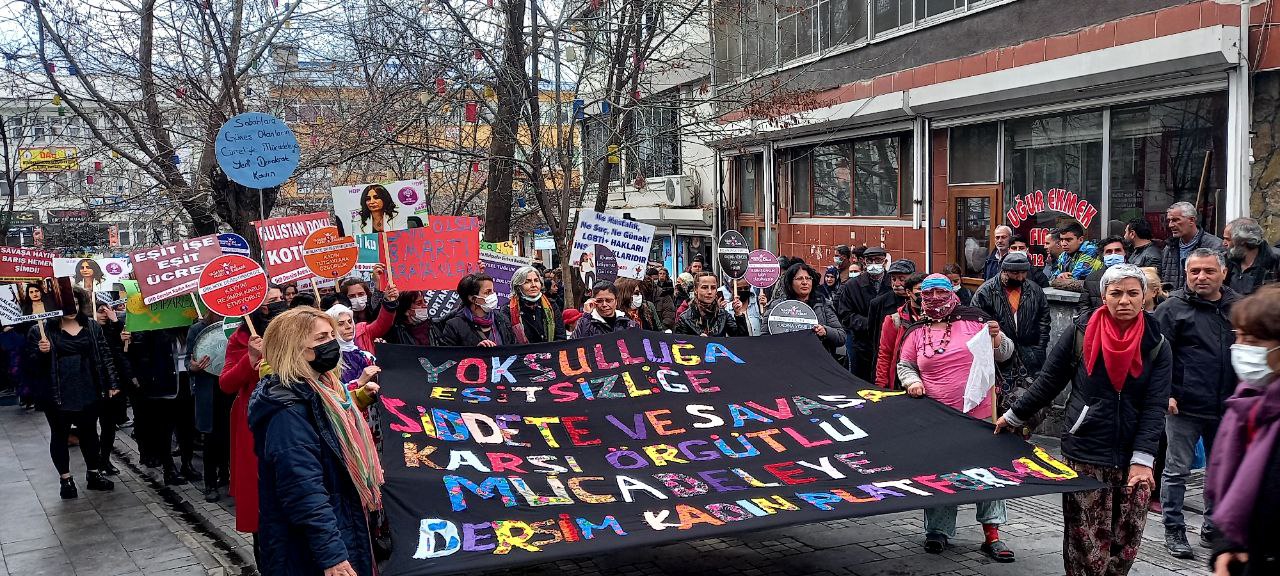 Dersim Kadın Platformu, “Yoksulluğa Eşitsizliğe Şiddete ve Savaşa Karşı Örgütü Mücadeleye” şiarıyla Sanat Sokağı’nda bir araya gelen yüzlerce kadın, Seyit Rıza Meydanı’na yürüdü. Davul, zurna, zılgıtlar ve Dersim Belediyesi Korosu ile Metin Kahraman’ın Kürtçe ve Türkçe konserleri eşliğinde halay çeken kadınlar, “Jin, jîyan azadi”, “yaşasın kadın mücadelesi”, “susmuyoruz, korkmuyoruz itaat etmiyoruz” sloganları attı.