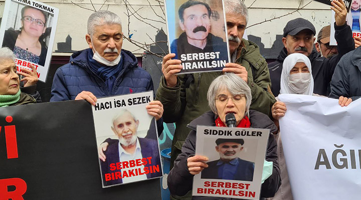 İnsan Hakları Derneği (İHD) İstanbul Şubesi Hapishane Komisyonu, hasta tutukluların durumuna dikkat çekmek için her hafta düzenledikleri “F Oturumu” nun 564’üncüsünü dernek binası önünde gerçekleştirdi. Bu hafta İzmir Menemen R Tipi Hapishanesi’nde tutulan 83 yaşındaki ağır hasta tutuklu Sıddık Güler’in sağlık durumuna dikkat çekildi. Eyleme, Halkların Demokratik Partisi (HDP) Milletvekili Musa Piroğlu’nun yanı sıra hak savunucuları ve tutuklu yakınları katılırken, açıklamayı İHD İstanbul Şubesi Hapishane Komisyonu’ndan Hatice Onaran yaptı.