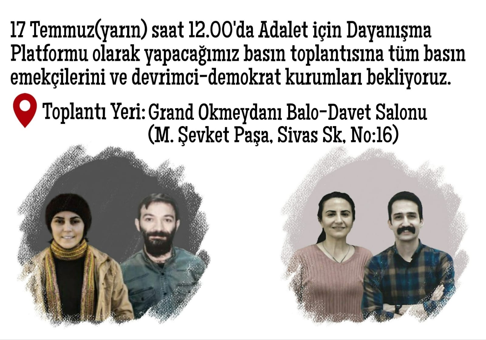 Adalet için Dayanışma Platformu yarın yapacağı basın açıklamasına çağrı yaptı.