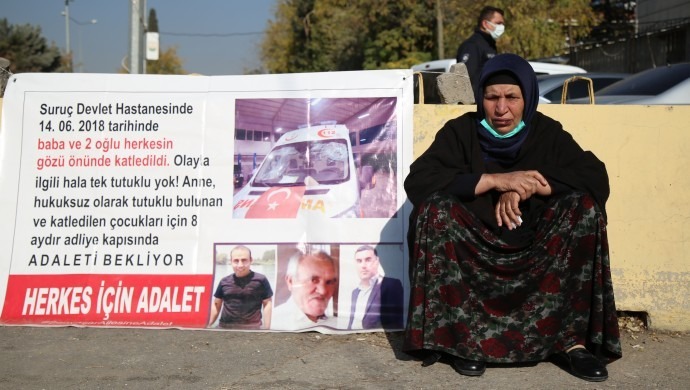 AKP Urfa Milletvekili İbrahim Halil Yıldız’ın koruma ve yakınlarının saldırısı sonucu eşi ve 2 oğlunu yitiren Emine Şenyaşar ve saldırılardan yaralı kurtulan oğlu Ferit Şenyaşar’ın 9 Mart 2021 tarihinde Urfa Adliyesi önünde başlattığı Adalet Nöbeti 330’uncu gününe girdi.