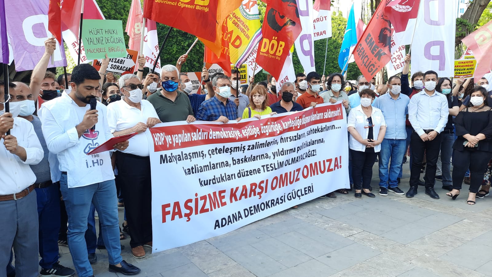 İzmir’de HDP’ye yönelik faşist saldırı ve HDP’li Deniz Poyraz’ın katledilmesi Adana’da Adana Demokrasi Güçleri tarafından protesto edildi. İnönü Parkı’nda yapılan basın açıklamasını İHD Adana Şubesi Başkanı Yakup Ataş okudu.