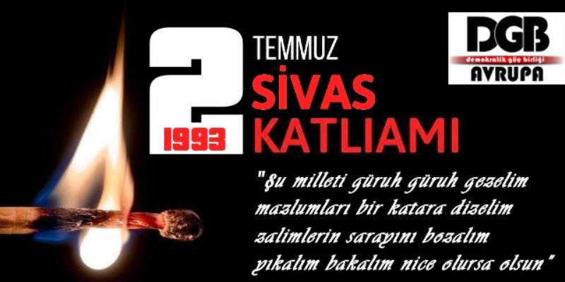 Avrupa Demokratik Güç Birliği (ADGB), Sivas Katliamı’nın yıl dönümü nedeniyle açıklama yayımladı. Açıklamada; “Gün ortak davranma günüdür şiarıyla mücadeleyi hep birlikte yükseltelim Sivas katliamının ve tüm katliam ve soykırımların hesabını soralım Diktatörün tahtını yerle bir edelim” ifadeleri kullanıldı.