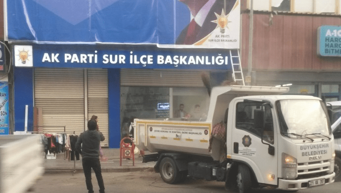 AKP Sur İlçe Başkanlığı, Sur ilçesi Cami Nebi Mahallesi’nde bulunan İnönü Caddesi’nde yeni binasına taşındı. İlçe binasının onarım çalışmalarında kayyım yönetiminde olan Diyarbakır Büyükşehir Belediyesi’ne (DBB) bağlı birimlerin kullanıldığı belirtildi.
