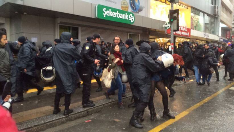Ankara Kadın Platformu’nun 8 Mart Dünya Kadınlar Günü için düzenlediği mitinge polis saldırdı. Saldırıda çok sayıda kadının yanı sıra MA muhabiri Diren Yurtsever de gözaltına alındı.