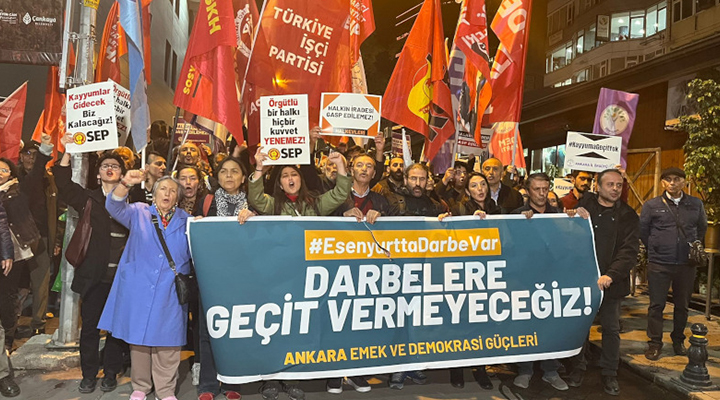 Ankara Emek ve Demokrasi Güçleri olarak halkın iradesinin gasp edilmesi asla kabul etmeyecekleri kaydedilen açıklamada, “Yargı sopası kullanılarak yapılmak istenen demokrasiye yönelik bu müdahalelere karşı barışın ve özgürlüklerin daim olduğu aydınlık ve demokratik bir ülke için kararlılıkla mücadele edeceğimizi bir kez daha ilan ediyoruz. Esenyurt’ta darbe var! Darbelere geçit vermeyeceğiz” ifadeleri yer aldı.