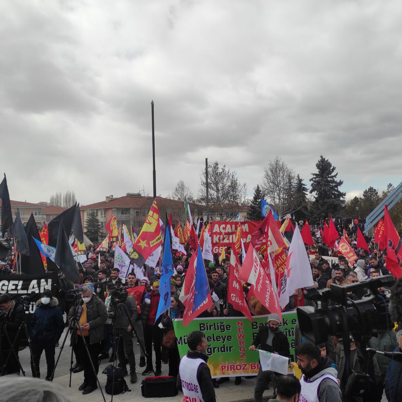 Ankara’da kutlanan Newroz’da İzmir’de katledilen Deniz Poyraz, hapishanede katledilen Garibe Gezer ve Diyarbakır Newrozu’nda katledilen Kemal Kurkut’un fotoğraflarının yer aldığı dövizler alana alınmadı. Dövizlerin alana alınmamasına tertip komitesi üyeleri, “Kemal Kurkut, Deniz Poyraz, Garibe Gezer ölümsüzdür” diyerek tepki gösterdi.