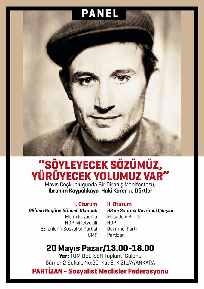 “45 yıl önce Diyarbakır işkencehanelerinde 1971 Askeri Faşist Cuntacıları tarafından 90 gün süren işkencenin sonrası ser verip sır vermeyerek 18 Mayıs’ta ölümsüzleşen İbrahim Kaypakkaya ve yine 1980 Askeri Faşist Cuntacılarının en ağır işkenceleri gerçekleştirdiği Diyarbakır Hapishanesi 33’üncü koğuşta kalan Ferhat Kurtay, Necmi Öner, Eşref Anyık ve Mahmut Zengin, 16 Mayıs’ı 17 Mayıs’a bağlayan 1982 gecesinde zulme karşı bedenlerini ateş çemberi yaparak ölümsüzleşen Dörtler şehadet yıldönümlerinde bir panel düzenleyecek.” Şeklinde çağrı yapıldı. Panelin içeriğine dair, “Panelde genel konuşma hattını bu yıl 50. Miladını dolduran ’68 devrimci kopuşu gündemi ve İbrahim Kaypakkaya, Haki Karer ve Dörtlerin Mücadelesi oluşturuyor” sözleriyle bilgi verildi.