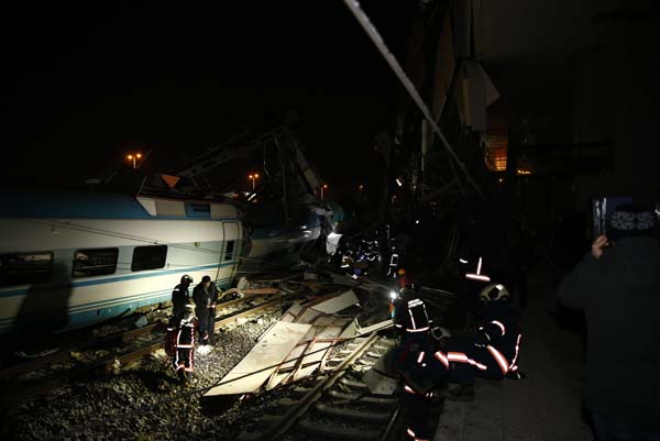 Ankara’da bu sabah 06.30’da YHT Garı’ndan Konya’ya hareket eden Yüksek Hızlı Tren (YHT), saat 06.40 sıralarında Yenimahalle Marşandiz İstasyonu yakınlarında kılavuz trenle (raylarda bir sorun olup olmadığını kontrol eden tren) çarpıştı. Kaza sonucu 2 vagon devrilirken, üst geçit ve istasyon da trenin üzerine çöktü.