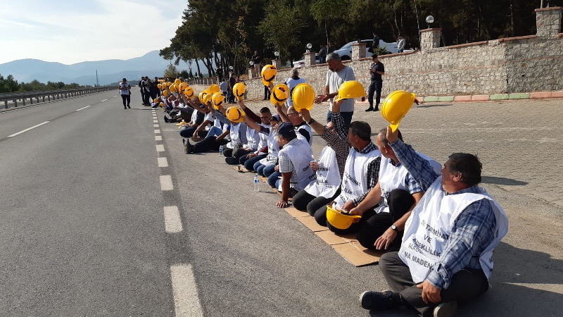 Madenciler, ilçe merkezinde başlattıkları yürüyüşü, 5 yıl önce yitirdikleri 301 madencinin mezarlarını ziyaret ettikten sonra Ankara’ya doğru sürdürmüşlerdi. Ancak, madencilerin önü Kırkaağaç ilçesi yakınlarında kesildi.