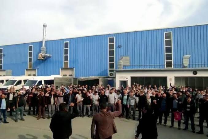 İşçiler, fabrikada yürüyüş ve eylemler düzenleyip “Sadaka değil hakkımızı isteriz”, “Açlıktan ölmeyiz biz bu yoldan dönmeyiz” sloganları atıyor.