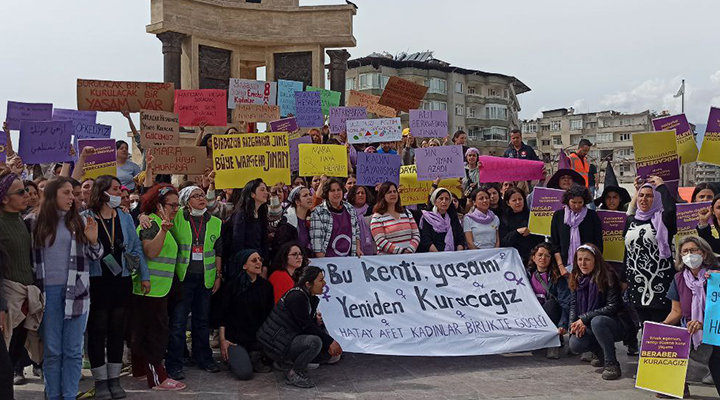 Açıklamanın devamında, “Bu yıl 8 Mart’a kaybettiğimiz binlerce kız kardeşimizin, dostumuzun öfkesi ve bizlerde yarattığı mücadele ruhuyla giriyoruz. Defne’den, Samandağ’dan, Serinyol ve Antakya’dan kadınlar olarak buradayız. Sorulacak hesabımız, kurulacak yeni yaşamlarımız için buradayız, yitirdiğimiz bütün kız kardeşlerimiz, dostlarımız için buradayız, şehrimizin her bir sokağını tekrar inşaa etmek, birbirimize yurt olmak için buradayız. Yaşamlarımızdan ve birbirimizden vaz geçmedik, vazgeçmiyoruz!” ifadelerine yer verildi.