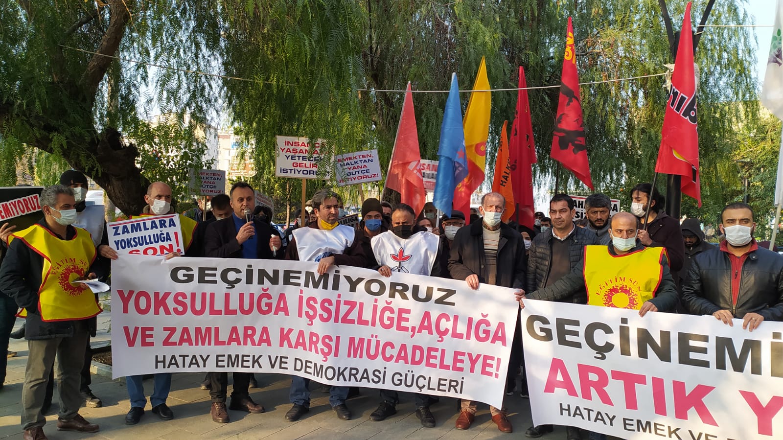 “Geçinemiyoruz. Yoksulluğa, işsizliğe, açlığa ve zamlara karşı mücadeleye”, “Geçinemiyor. Artık yeter” pankartlarının taşındığı eylemde, Eğitim-Sen Hatay Şube Başkanı Özgür Traş açıklama yaptı.
