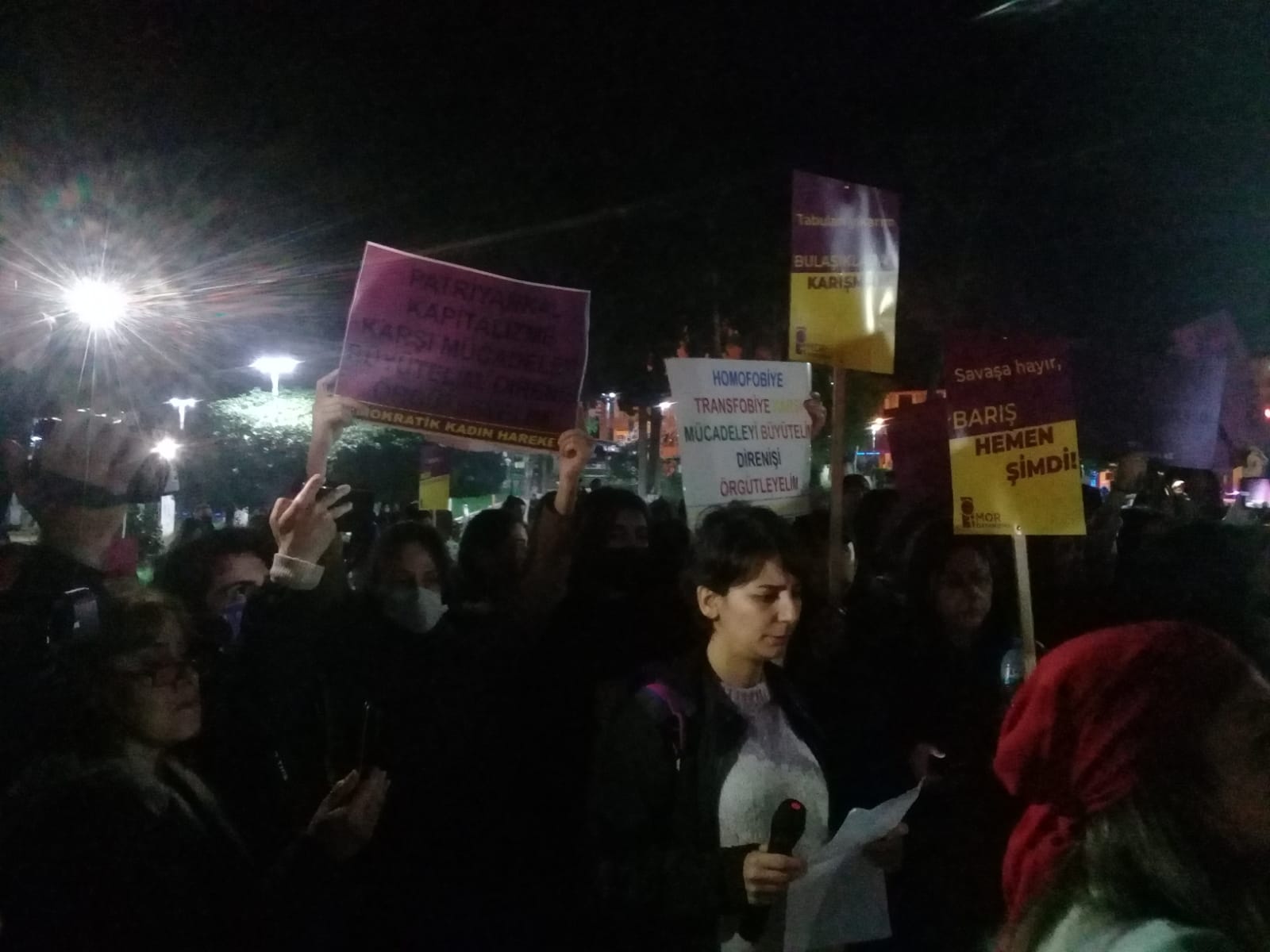 Ataerkil kapitalist sistemin yarattığı eşitsizlik, ayrımcılık, sömürü, katliam, dışlama ve ötekileştirmenin derinleştiğini söyleyen Çokluk, “Bugün bizler tüm dünya kadınları LGBTİ+’lar olarak hayatı ve dünyayı kadınlardan ve LGBTİ+’lardan yana değiştirmek ve örgütlemek için alanları dolduruyor ve en güçlü sesimizle “bugün ben de varım, dün de vardım, yarın da var olacağım” diye haykırıyoruz” dedi.