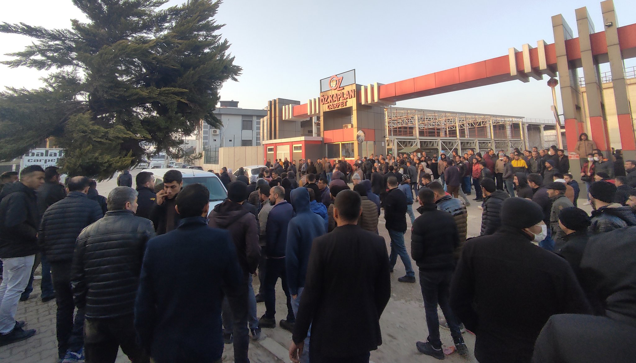 Antep’te Başpınar Organize Sanayi Bölgesinde kurulu bulunan Özkaplan Halı fabrikasının işçileri patronun yüzde 50 zam açıklamasına karşı iş bırakarak beklemeye başladı.