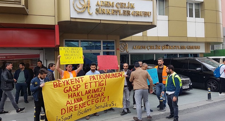 Adem Çelik Şirketler Grubu’na bağlı Beykent Üniversitesi’nin Avalon şantiyesinde çalışırken işten atılan ve geriye dönük fazla mesai, yol parası, hafta sonu ve resmi-dini tatillerdeki çalışmaların karşılığının ödenmesini talep eden işçiler, şirketin önünde eylemlerine devam ediyor.