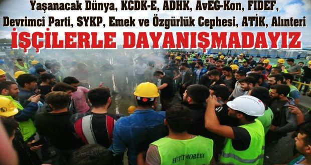 Tüm işçi ve emekçileri dayanışmaya, birlikte mücadeleye çağıran bizler, yurt dışında faaliyet yürüten kurumlar olarak, inşaat işçilerinin haklı talepler için başlattıkları direnişin yanında olduğumuzu ilan ediyor, gözaltına alınan işçilerin ve sendikacıların tümünün derhal serbest bırakılmasını istiyoruz.