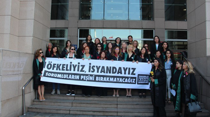 İstanbul Barosu’na üye Değişim için Kadın Avukatlar Grubu, son dönemde sistematik şekilde artan kadın katliamlarına karşı Çağlayan’da bulunan İstanbul Adliyesi önünde açıklama yaptı. “Öfkeliyiz isyandayız. Sorumluların peşini bırakmayacağız” pankartının açıldığı eylemde, “Kadın cinayetleri politiktir”, “Susmuyoruz, korkmuyoruz, itaat etmiyoruz” sloganları atıldı.