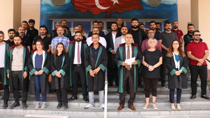 Baro Başkanı Ergün Canan, avukatlara dönük saldırıların artarak devam ettiğine işaret ederek, dün akşam saatlerinde de avukatlar Harika Günay Karataş ile Fırat İke’nın darp edildiğini aktardı. Yüksekova İlçe Jandarma Komutanlığı’nda görevli B.K adlı rütbeli askerin emriyle avukatların askerler tarafından darp edildiği ve yerlerde süründürülerek karakol dışına çıkarıldığına dikkati çeken Canan, “Meslektaşlarımıza karşı yapılan darp onur kırıcı muameleye dönüşmüştür” dedi.