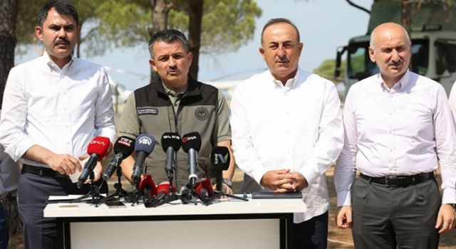 Dışişleri Bakanı Mevlüt Çavuşoğlu, Çevre Şehircilik Bakanı Murat Kurum ve Ulaştırma Bakanı Adil Karaismailoğlu’nun da eşlik ettiği Pakdemirli, “Şu anda aktif yangınlarda iyiye gidiş var. 71 orman yangınından 57’si kontrol altına alındı, devam eden 14 yangına müdahale sürüyor,” dedi.