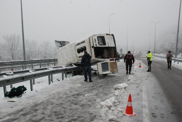 Bartın’da işçileri taşıyan minibüsün devrilmesi sonucu 11 kişi yaralandı. Amasra ilçesindeki kaza, Bartın’dan Kurucaşile istikametine giden Sabahattin K. idaresindeki minibüsün Bostanlar köyü Amasra tünel girişinde devrilmesiyle gerçekleşti.