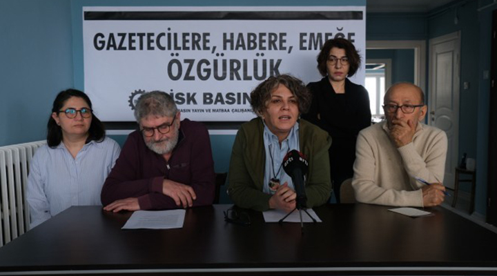 Devrimci İşçi Sendikaları Konfederasyonu’na (DİSK) bağlı Türkiye Basın, Yayın Gazetecilik, Grafik, Tasarım, Baskı ve Ambalaj Sanayi İşçileri Sendikası (Basın-İş), gözaltına alınan ve tutuklanan gazetecilere ilişkin genel merkez binasında basın toplantısı düzenledi. “Gazetecilere, habere, emeğe, özgürlük” pankartının asıldığı toplantıya, Basın-İş Genel Başkanı Faruk Eren ve çok sayıda gazeteci katıldı.