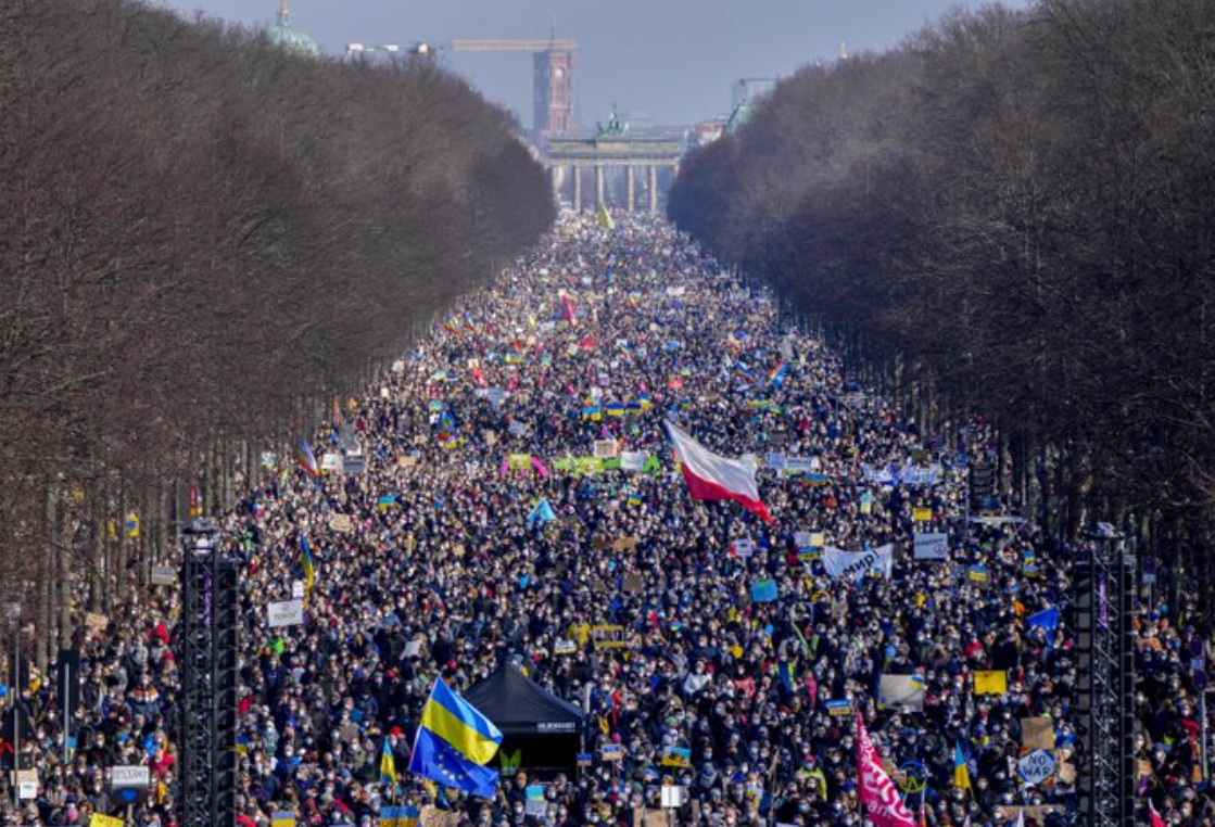 Rusya’nın Ukrayna’ya başlattığı askeri harekata karşı dünyanın her tarafından tepkiler sürüyor. Almanya’nı başkenti Berlin’de bir araya gelen 100 bin kişi Rusya’yı protesto etti. Ukrayna halkıyla dayanışma içinde mesajını veren göstericiler, “Ukrayna’dan çık”, “Putin, terapiye git, Ukrayna’yı ve dünyayı rahat bırak” yazılı pankartlar taşıdı.