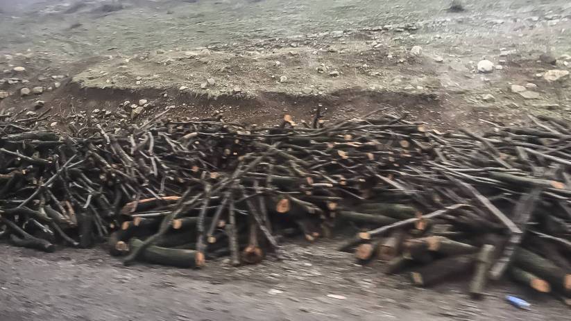 Korucular tarafından kesilen ağaçlar, Besta Komando Tabur Komutanlığı’na yakın bir noktada toplatılıyor. Kesilen ağaçların çevredeki askeri üs bölgelerinde yakacak olarak kullanıldığı bildirildi.