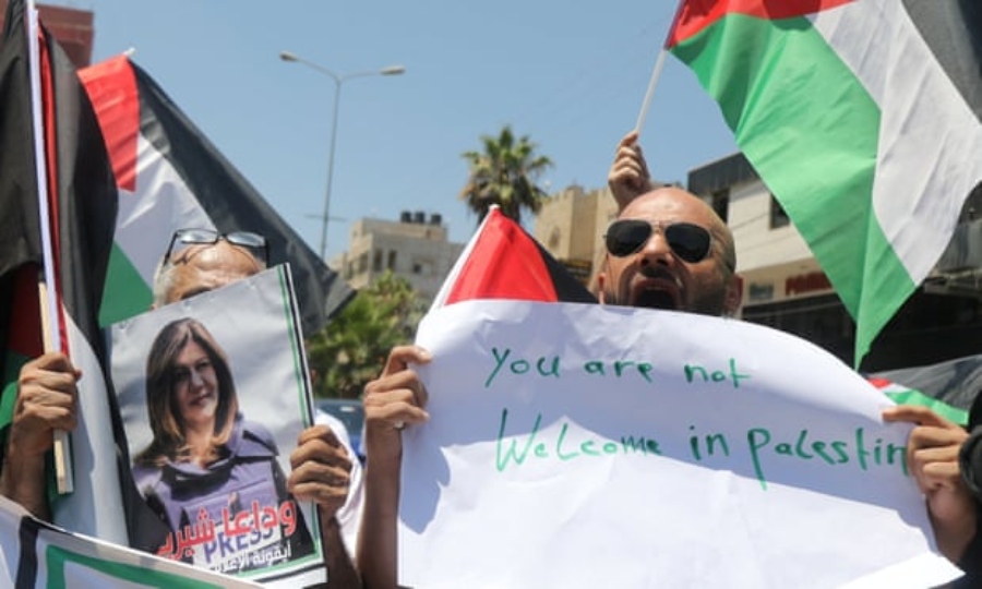 Bıden’ın Batı Şeria’yı ziyareti sebebiyle, ABD yönetiminin İsrail işgali yanlısı tutumuna yönelik sivil protestolar düzenlendi. Filistinli sanatçı Takiyyuddin Sebatin, Ayrım Duvarı’nın Beytüllahim kentinin girişindeki kısmına, cadde üzerinden araçla seyir halindeyken görülecek şekilde Şirin Ebu Akile’nin büyük bir portresini resmetti.