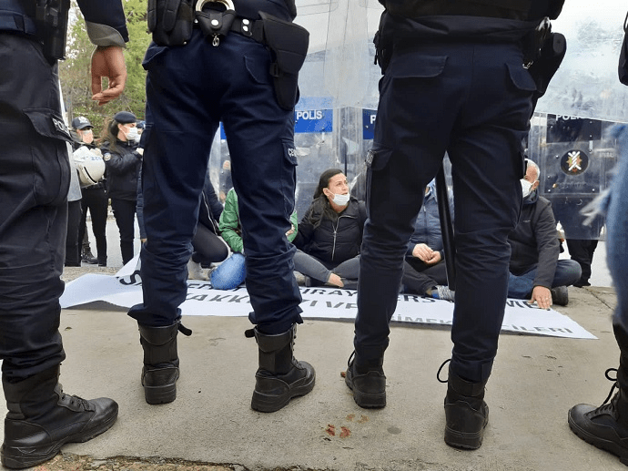 İşçilerin etrafını saran polis, gazetecilerin görüntü almasını da engellemeye çalıştı. Bimeks işçilerinden Bünyamin Bilikci, Leyla Akıncı, Adem Demir, Betül Celep ve Uzmanı Umut-Sen Sözcüsü Başaran Aksu gözaltına alındı.