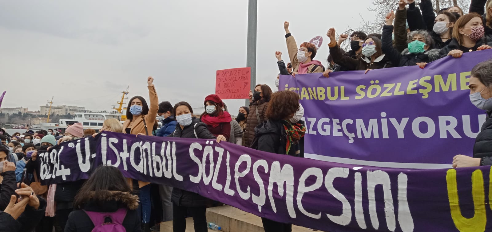 İstanbul Sözleşmesi’ni Uygula Kampanya Grubu, Cumhurbaşkanlığı Kararnamesi’yle Türkiye’nin İstanbul Sözleşmesi’nden çekilmesini protesto etmek amacıyla Kadıköy’de bulunan Beşiktaş İskelesi’nde bir araya gelerek basın açıklaması gerçekleştirdi.