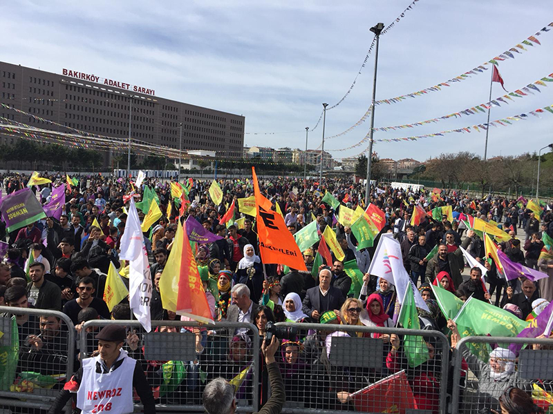 İstanbul Newroz’u Bakırköy Halk Pazarı’nda gerçekleştiriliyor. Alana binlerce kişi geldi Alana ulaşanlar sık sık Efrin için sloganlar atıyor.