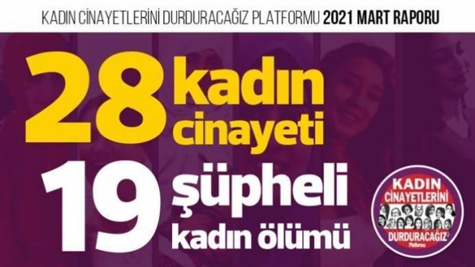 Kadın Cinayetlerini Durduracağız Platformu (KCDP), Mart ayında katledilen kadınların verilerini paylaştığı raporunu yayınladı. Rapora göre Mart ayında 28 kadın katledildi, 19’u ise şüpheli şekilde yaşamını yitirdi.