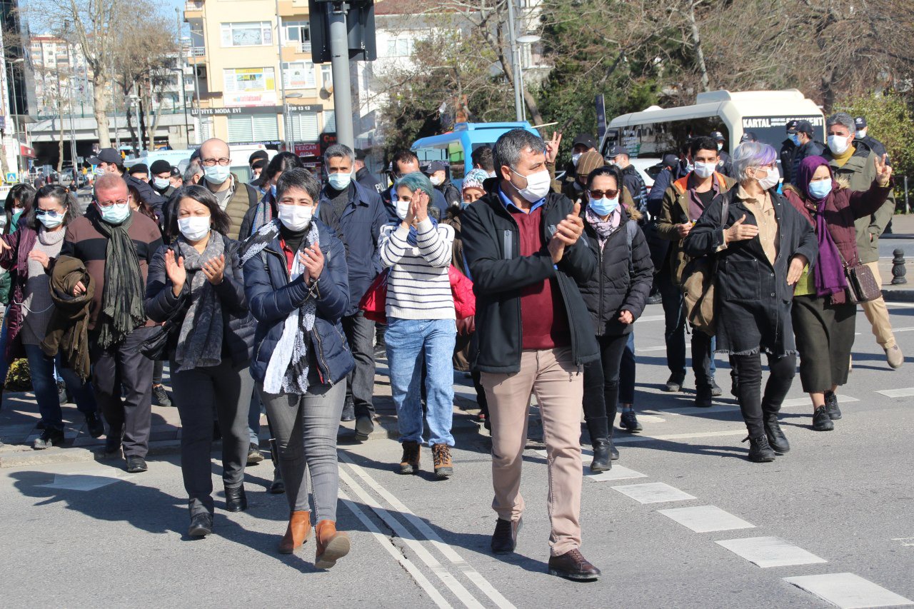 Parti ve örgüt milletvekilleri, temsilciler ve yöneticilerinden oluşan heyet, HDP Kartal ilçe binasında bir araya geldi. Polis, bildiride bulunan 7’nci madde olan “İmralı be tüm hapishanelerdeki politik tutsakların özgürlüğü için mücadeleyi yükseltelim” maddesinin ‘terör örgütü propagandası’ olduğu iddiasıyla bildiri dağıtımına izin vermedi. Savcılıktan gelen bir karar olup olmadığını soran heyete polis, yakın zamanda bildirilerin hepsinin savcılık tarafından toplanılacağını ifade etti. Heyet, “Birlik, mücadele ve zafer için birleşelim örgütlenelim” şiarıyla esnaf ziyaretleri gerçekleştirdi.