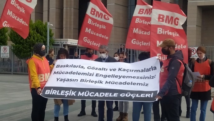 Birleşik Mücadele Güçleri (BMG), polisin “zorla alıkoyma”, ajanlaştırma ve baskılarına ilişkin Çağlayan’da bulunan İstanbul Adliyesi önünde açıklama yaptı. Açıklamaya Halkların Demokratik Kongresi (HDK) İl Eş Sözcüleri Erkan Tepeli ve Aynur Cengiz, Halkların Demokratik Partisi (HDP) Parti Meclisi (PM) üyesi Mediha Yüksel de destek verdi. “Baskılarla, gözaltılarla ve kaçırmalarla mücadelemizi engelleyemezsiniz. Yaşasın birleşik mücadelemiz” pankartının açıldığı açıklamada, “Baskılar bizi yıldıramaz” sloganı atıldı.