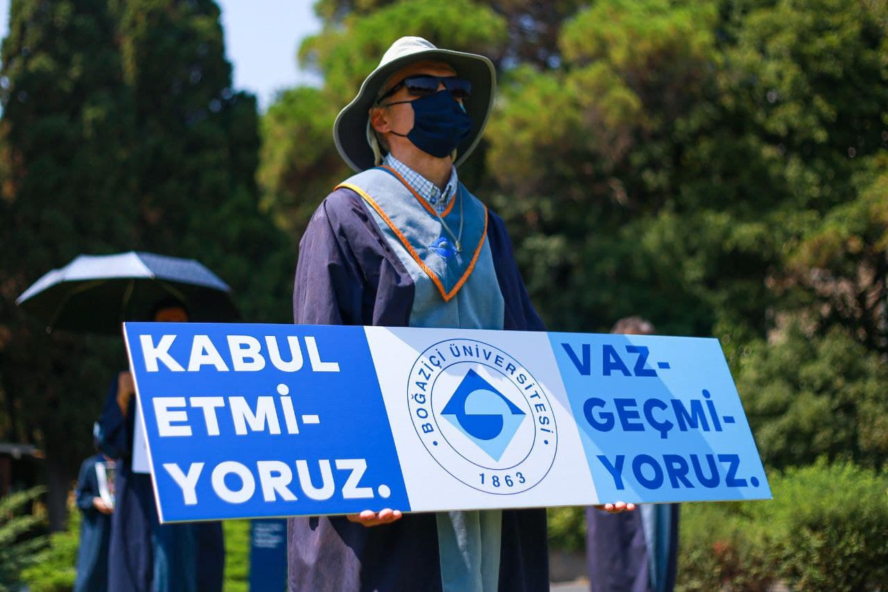 Boğaziçili akademisyenler, AKP’li Cumhurbaşkanı Tayyip Erdoğan tarafından üniversiteye “kayyım” rektör atamalarını ve meslektaşlarının işten çıkarılmasını protesto etmek için 158’inci kez rektörlük binasına sırtını döndü.