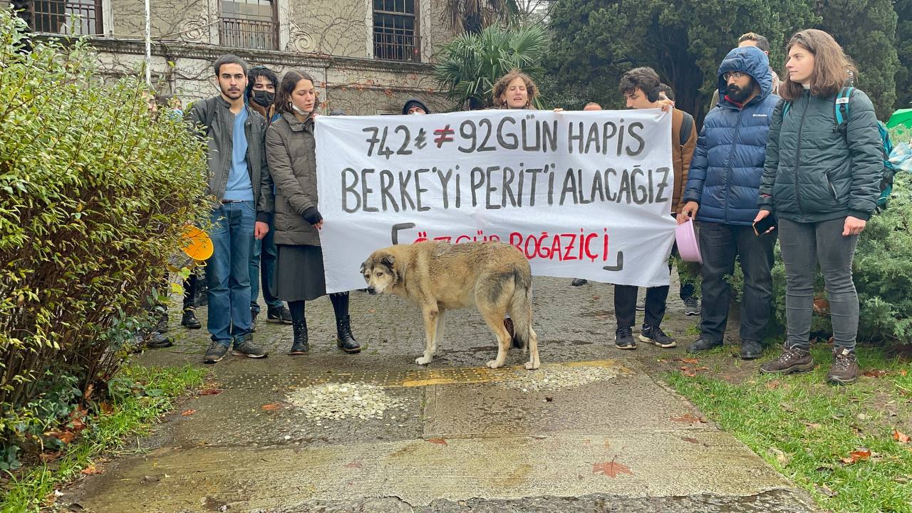 Boğaziçi Üniversitesi öğrencileri Caner Perit Özen ile Ersin Berke Gök’ün 92 gündür tutuklu bulunması nedeniyle öğrenciler rektörlük binası önünde açıklama yaptı.