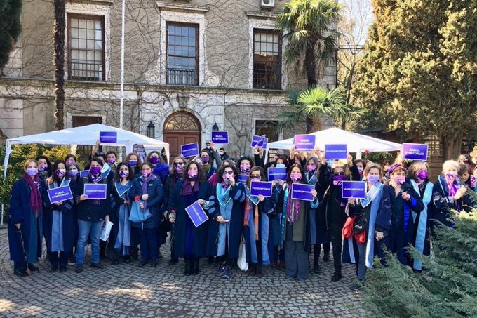 Kadın akademisyenler ise 8 Mart nöbeti tuttu. Güney Kampüs’ünde toplanan akademisyenler mor maskeler takıp, taşıdıkları “Kabul etmiyoruz”, “Vazgeçmiyoruz” dövizleri ile Melih Bulu’nun istifasını istedi.