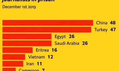 Sınır Tanımayan Gazeteciler örgütüne göre 2019’da dünya çapında 49 gazeteci öldürüldü, en fazla gazeteci tutuklayan ülke ise Çin