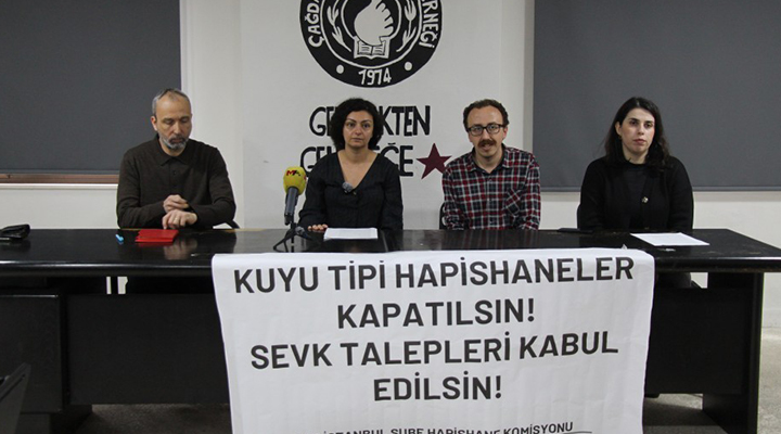 Çağdaş Hukukçular Derneği (ÇHD) İstanbul Şubesi, yüksek güvenlikli hapishanelerin kapatılması ve sevk için hapishanelerde süren açlık grevlerine dair basın toplantısı düzenledi. Dernekte yapılan toplantıda, “Kuyu tipi hapishaneler kapatılsın! Sevk talepleri kabul edilsin” pankartı yer aldı. Toplantıda açıklama yapan açıldığı toplantıya çok sayıda avukat katıldı.