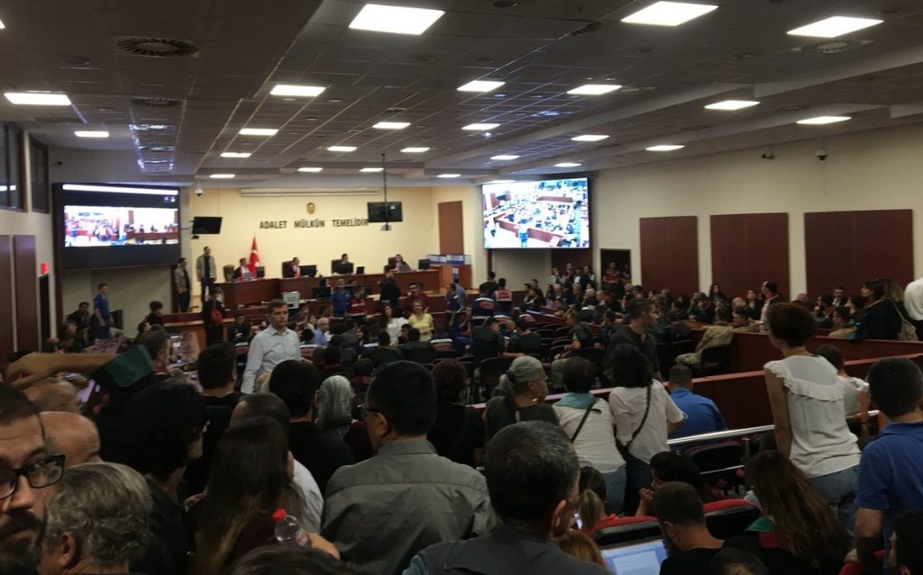 Halkın Hukuk Bürosu (HHB) ve KHK ile kapatılan Çağdaş Hukukçular Derneği (ÇHD) üyesi 17’si tutuklu 20 avukatın yargılandığı davanın ilk duruşması dün başlamıştı. Avukatların yargılandığı duruşma ikinci gününde Bakırköy’de bulunan İstanbul 37. Ağır Ceza Mahkemesinde devam ediyor.