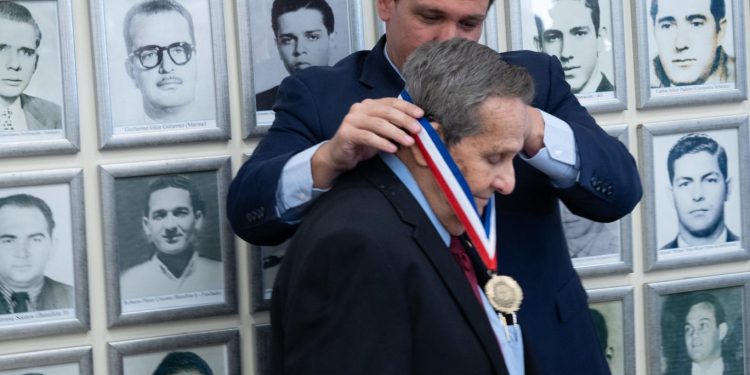 DeSantis geçen hafta Perşembe günü madalya taktığı Rodriguez ile fotoğrafını Pazartesi günü sosyal medya hesabından paylaştı ve Rodriguez’in CIA’deki kanlı geçmişinden övgüyle söz etti.