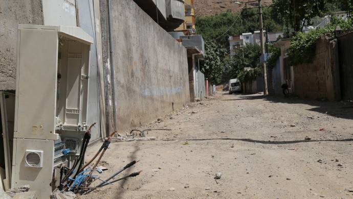 Silopi’den sonra Cizre’de de 70’i aşkın eve 19 gündür elektrik verilmiyor. Birçok ailenin evlerini terk ettiği sokakta elektriksiz bırakılan Cizreliler, bunaltıcı sıcaklara dikkat çekerek, yaşadıkları mağduriyetin çözülmesini istediler.